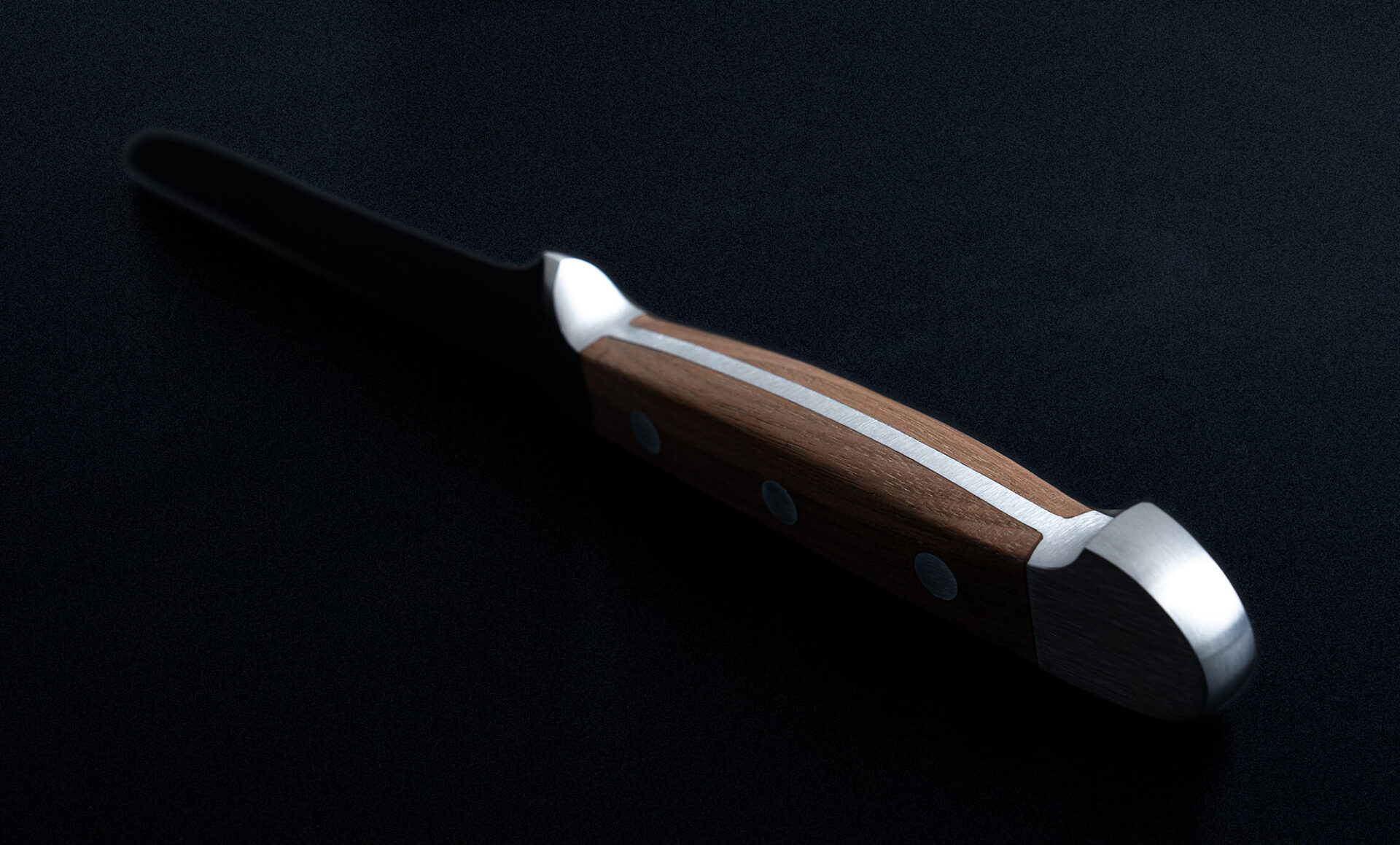 Kompakte 8-cm-Klinge für präzises Schälen und Putzen – warmer Walnussgriff für ermüdungsfreies Arbeiten.