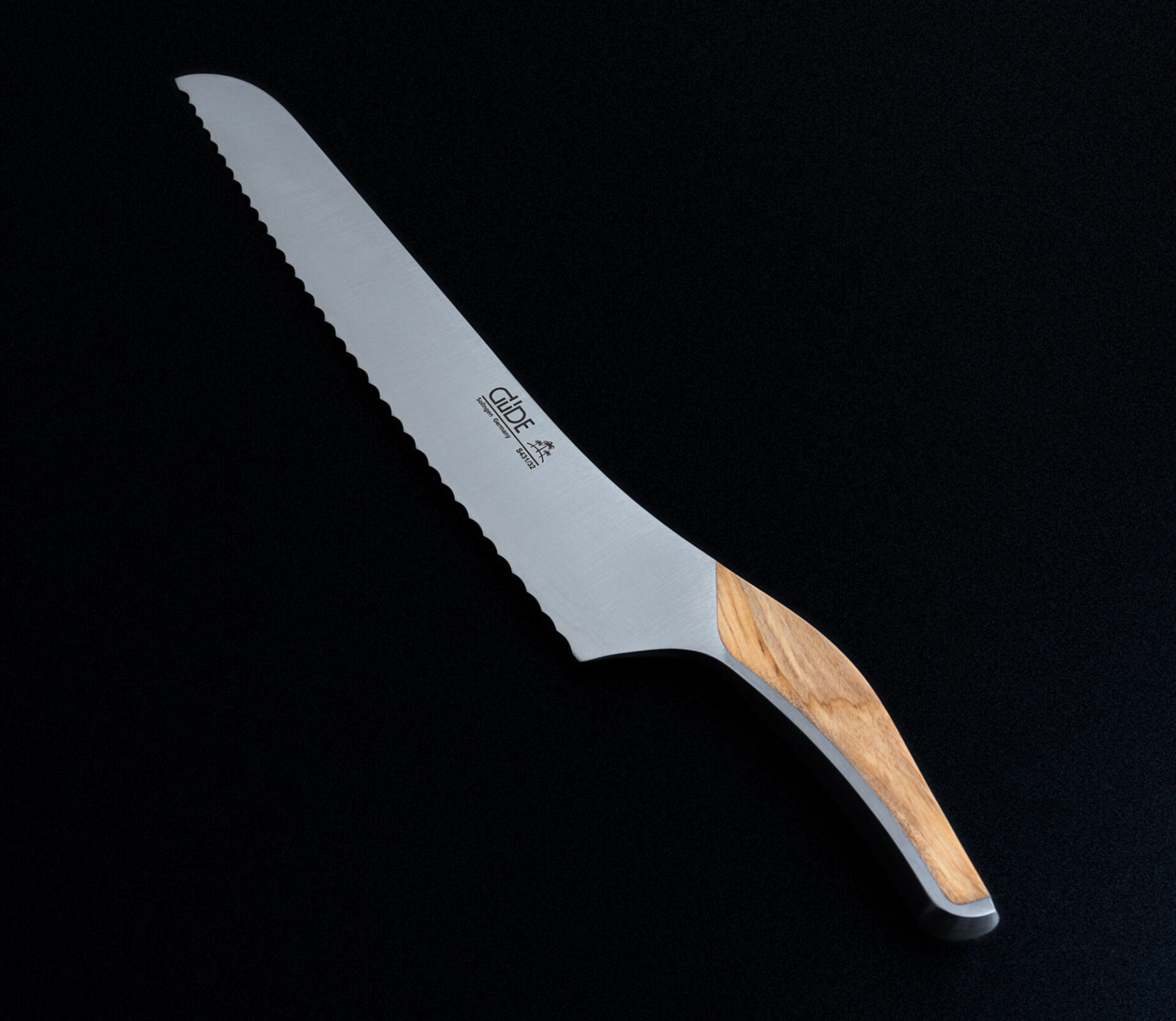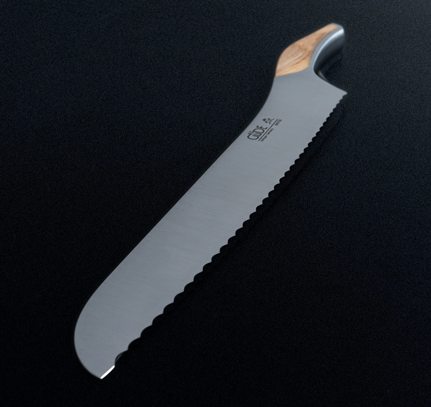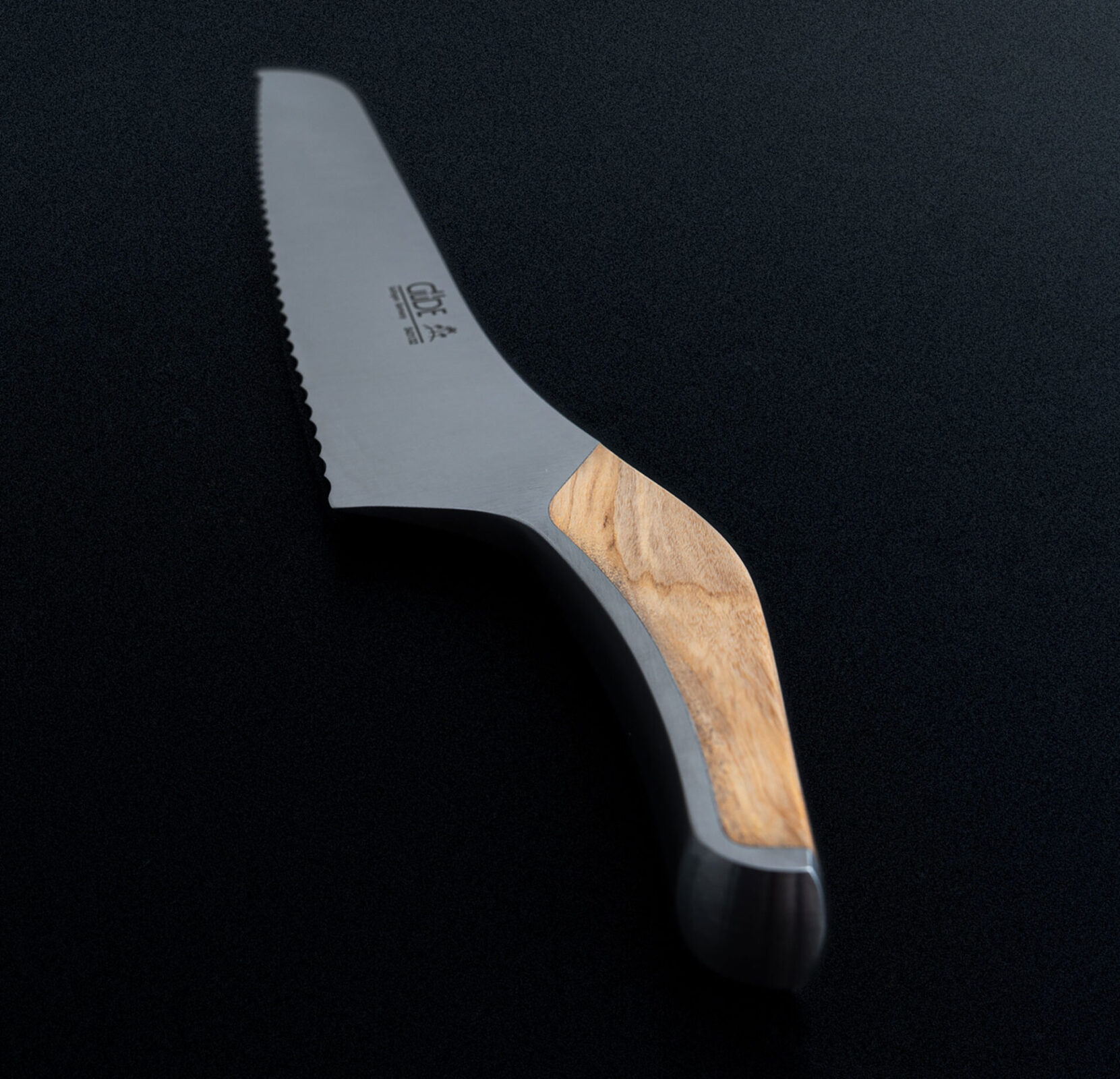 Wellenschliff trifft geräucherte Eiche – schneidet Kruste perfekt, liegt warm in der Hand.