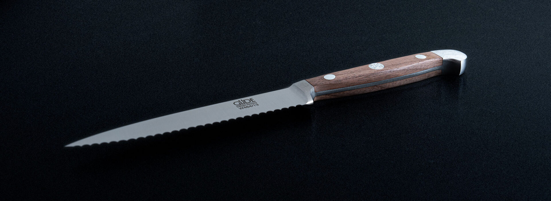 Das Güde Tomatenmesser Alpha Walnuss W464/13 begeistert durch seine kompromisslose Schärfe und überzeugt sowohl im klassischen als auch im kreativen Einsatz.