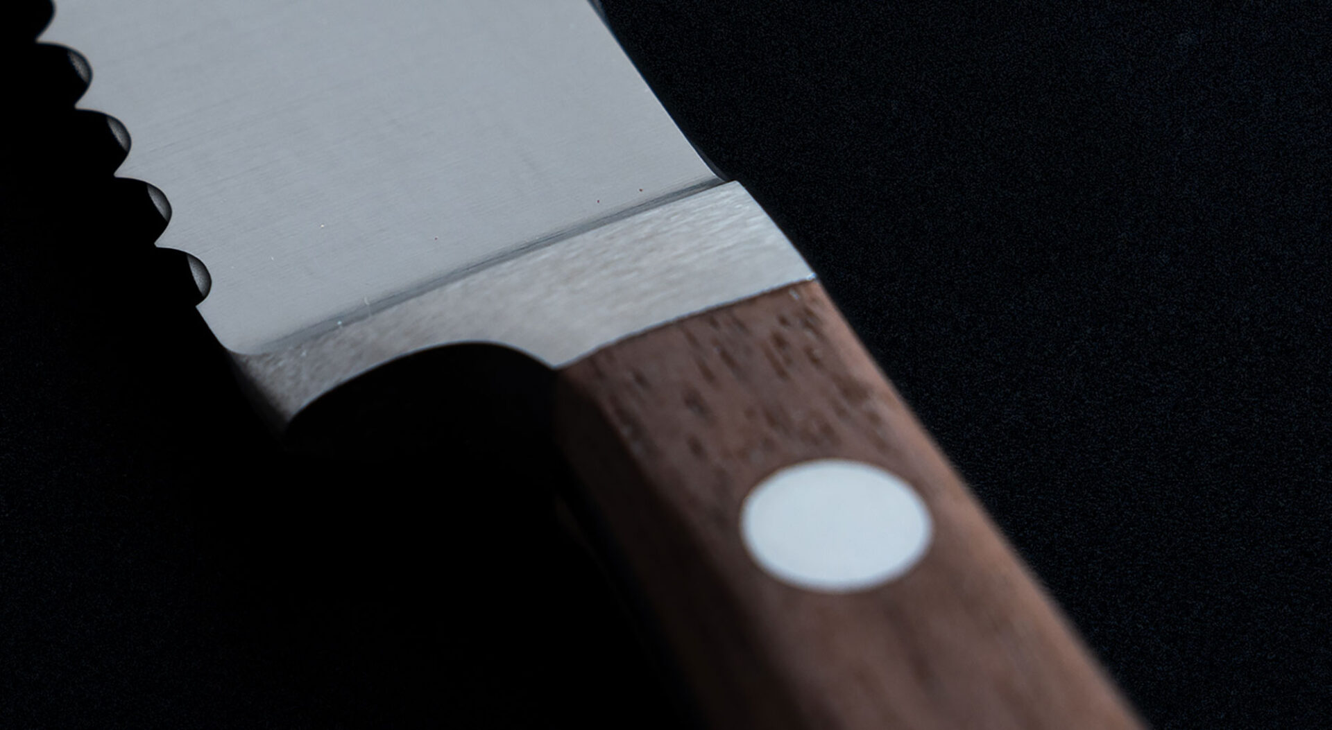 Die Serie Alpha Walnuss von Güde überzeugt durch Griffe aus fein gemasertem amerikanischem Walnussbaumholz, die dreifach mit rostfreien Edelstahl-Nieten sowie der markanten Aluminium-Palm-Niete versehen sind.