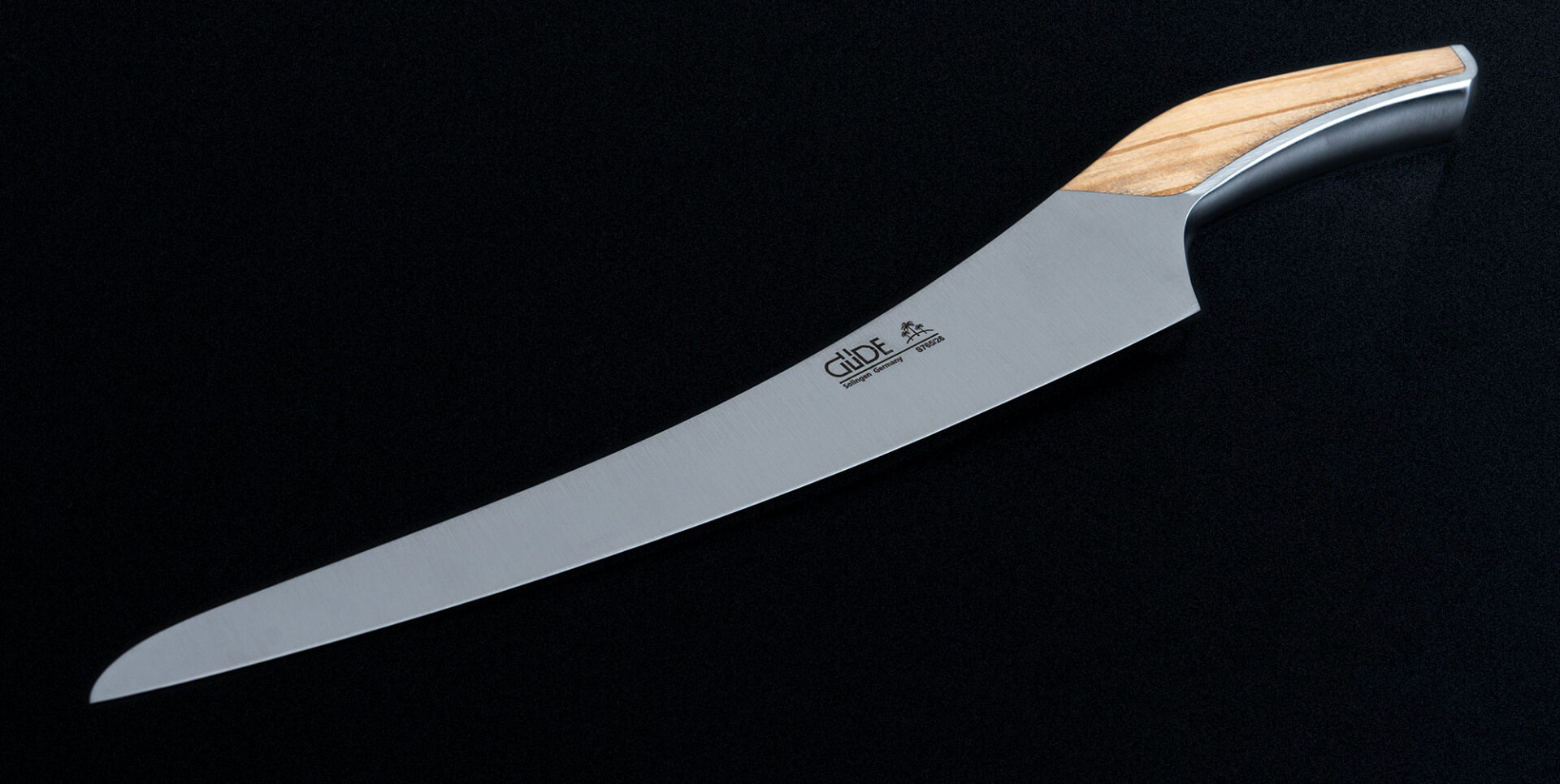 Halb-flexible Klinge für hauchdünne Scheiben, eleganter Olivenholzgriff für ermüdungsfreies Tranchieren.